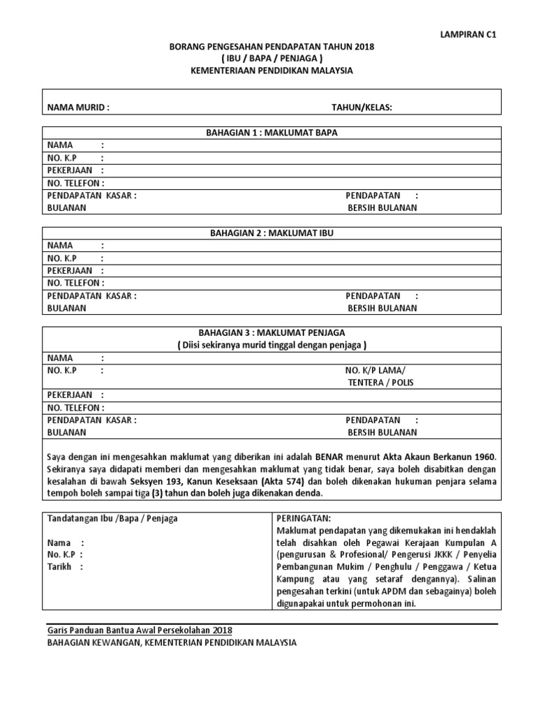 Borang Borang Bap 2018 Sekolah from imgv2-1-f.scribdassets.com Peraturan menteri perdagangan nomor 41 tahun 2018 tentang petunjuk teknis pelaksanaan kegiatan dekonsentrasi bidang perdagangan tahun anggaran 2018. Yayasan perak, tingkat 1, wisma yayasan perak, no.111, jalan sultan idris shah, 30000 ipoh, perak. Borang pengesahan pendapatan ( penjaga / pasangan penjaga) nama pelajar : Maklumat diri pelajar nama penuh : Borang pengesahan pendapatan bagi ibu/bapa/penjaga yang tiada penyata gaji/bekerja sendiri kepada : Contoh borang pengesahan akuan pendapatan mp3 & mp4. Share & embed borang pb2 borang pengesahan pendapatan.pdf. Untuk memahami arti dari pendapatan, maka akan diuraikan.