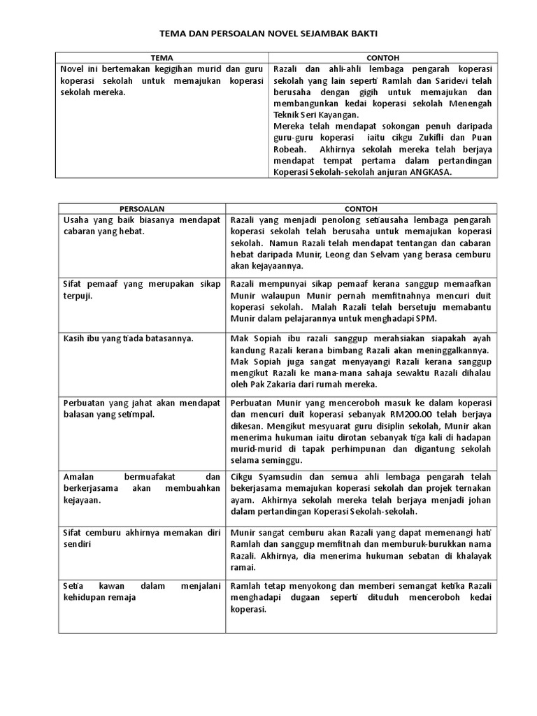 Tingkatan 1 bahasa melayu novel sejambak bakti. Sinopsis, watak dan perwatakan, tema, persoalan, nilai, pengajaran, latar masa, latar tempat : Komponen sastera dan novel bm / bahasa melayu. Pada pendapat anda, apakah usaha lain yang boleh dilakukan oleh ahli. Tema dan persoalan (novel bahasa melayu tingkatan 1).