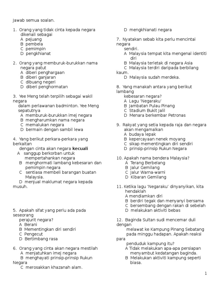 Untuk makluman bersama, soalan peperiksaan ini adalah berdasarkan kurikulum sekolah menengah yang baharu bagi tingkatan 1 iaitu kurikulum standard sekolah menengah (kssm).