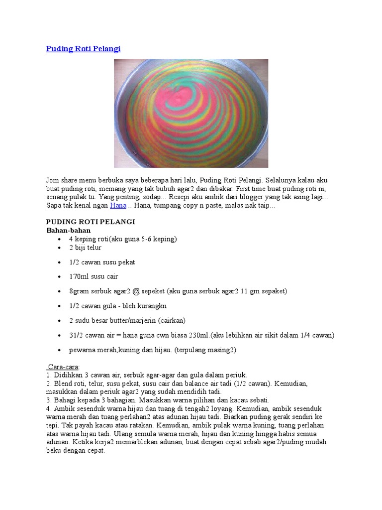 Resepi Puding Roti Pelangi : Puding Roti Pelangi Recipes Puding Roti Pelangi Recipe : Terima kasih tuhan ia kelihatan seperti cahaya yang sangat terang.